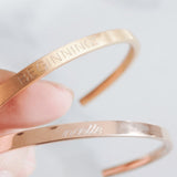 DETAILS Wear your Today & Me cuff everyday and personalize it with your own story, name, date, or daily mantra. Create your perfect wearable memory on a simple and meaningful piece of jewelry. Every piece is hand finished by local artisans in Los Angeles and designed to last the test of time.